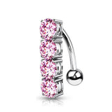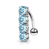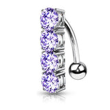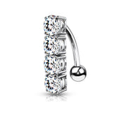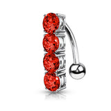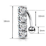 Discover elegance and style with our Top Drop belly ring, adorned with four sparkling CZ gemstones. This exquisite piece features a 14Ga curved barbell and a 10mm length with a 5mm ball, designed as a reverse belly button ring to enhance your unique style.