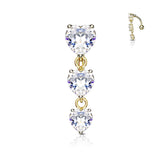 Discover elegance and style with our Top Drop Naval Ring, featuring three prong-set heart gemstones that add a touch of sophistication to any look. Crafted with a 14Ga curved barbell and a comfortable 10mm length with a 5mm ball, this piece is perfect for those who appreciate fine craftsmanship in their body jewelry.