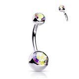 Titanium Curved Barbell Belly Ring, 14Ga, Jewel Set