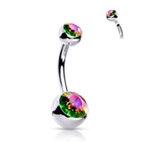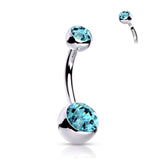 Enhance your style with our Implant Grade Titanium Belly Bar Piercing, featuring internally threaded design for comfort and safety. This exquisite piece includes two bezel-set Cubic Zirconia Gemstones in both the top ball (5mm) and bottom ball (8mm). Available in various lengths (10mm, 11mm, and 12mm) and a selection of striking colors, this belly button piercing is perfect for adding a touch of elegance to your collection.