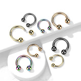 Discover the elegance and versatility of our Implant Grade Titanium, PVD Plated, Circular Barbell, Horseshoe Barbell Ring. Perfect for various piercing locations such as the nose, septum, ear cartilage, lip, eyebrow, nipple, and more, this jewelry adapts seamlessly to your personal style. Its hypoallergenic properties ensure comfort and safety, making it an ideal choice for sensitive skin.