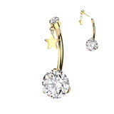 Titanium Star Dangle Belly Ring, CZ Gems, 14GA