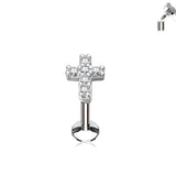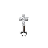 Discover the elegance and precision of our Internally Threaded Labret Stud, featuring a Cubic Zirconia Gem Lined cross top and a flat back for comfort. Crafted from high-quality 316L Surgical Steel, this piece is an excellent choice for various piercings including cartilage, nose, lip, and Monroe piercings. Enhance your style with this versatile and stylish accessory.