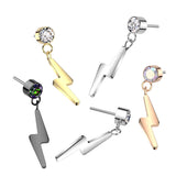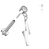 Titanium Labret with CZ & Lightning Dangle, 16GA